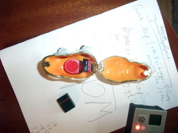 Затем точно таким же образом и в ту же яму была зарыта шкатулка в виде фигурки белого медвежонка с картой памяти внутри, на которую были скопированы материалы акций КД (сайт С. Летова "Московский концептуализм" - 14456 файлов, несколько видео акций КД, проведенных в разные годы на Киевогорском поле, включая акцию "Русский мир" 1985 года, pdf-файлы книг Библиотеки Московского концептуализма Германа Титова и другие материалы из архива КД) и с дублирующей ее содержание флешкой фирмы Adata 32 гб.